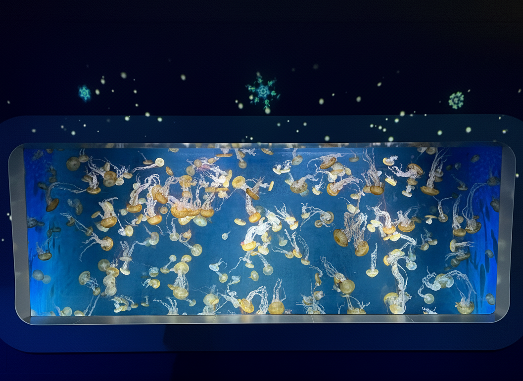 よく映画やドラマでも映し出されるこの有名なクラゲの展示は心が穏やかな綺麗な気持ちになります。